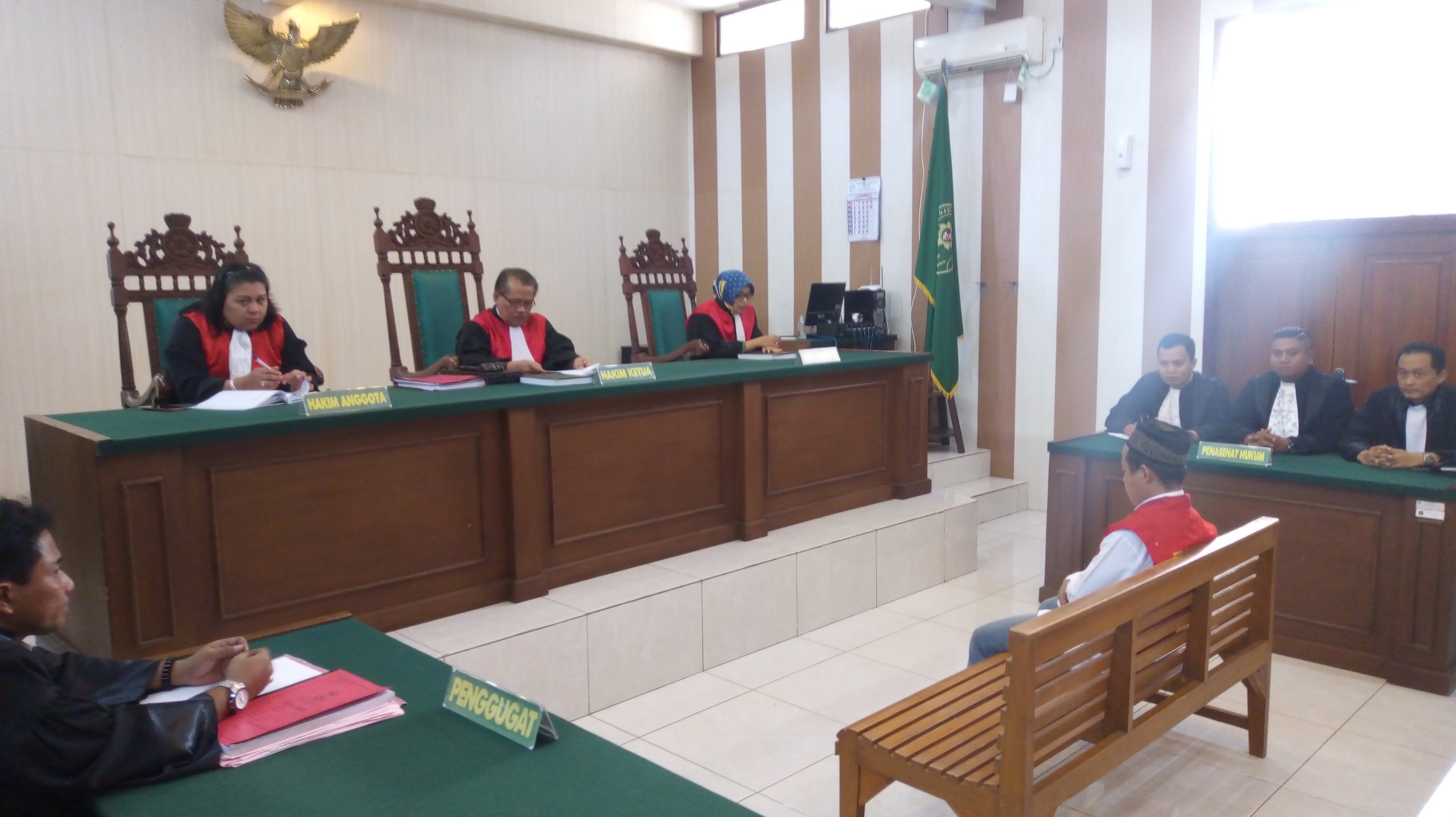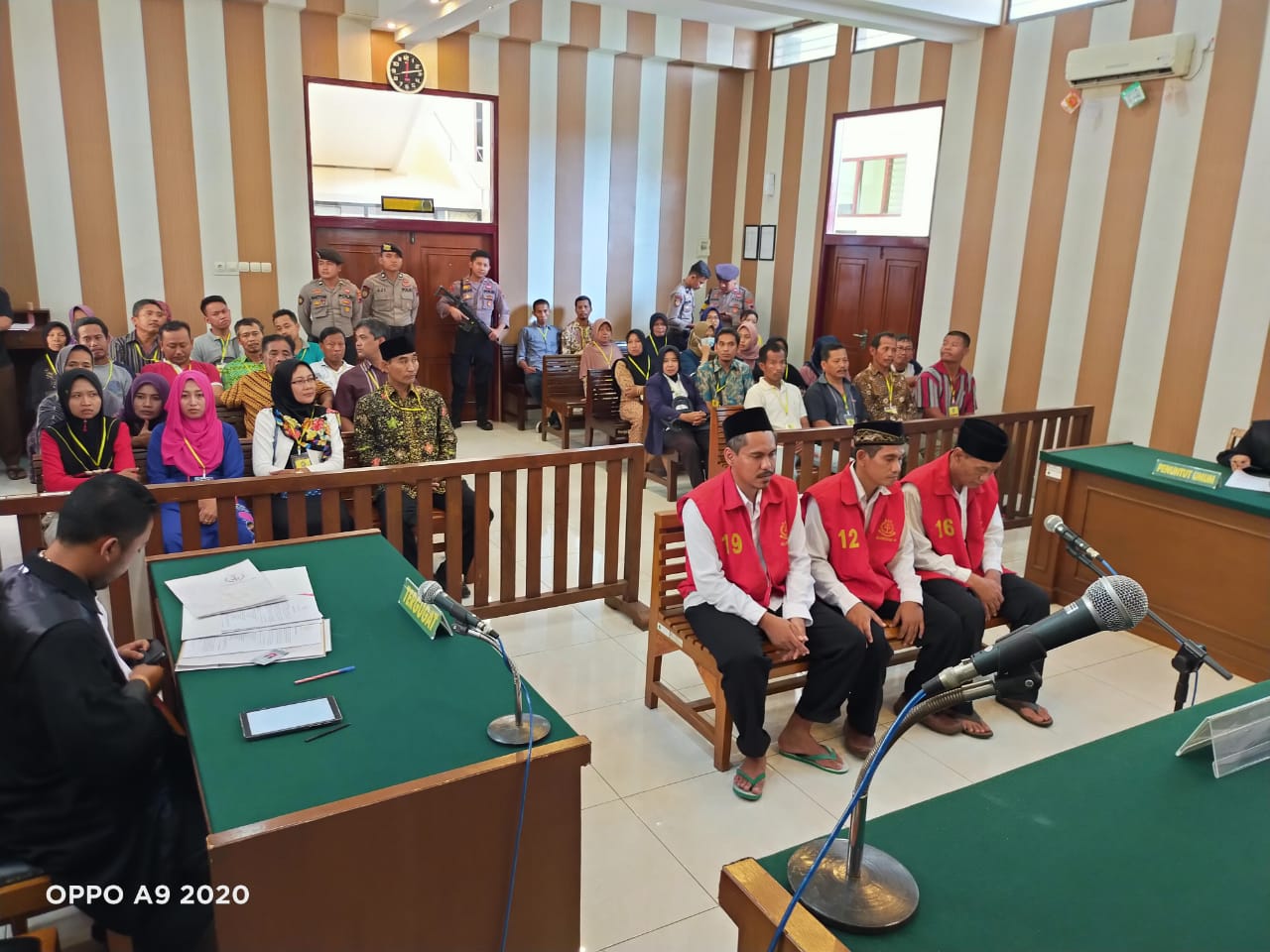 Pati – Sidang putusan terdakwa Leles Warga srikaton, Jaken, Pati, atas tuduhan pencurian 5 pohon jati dan 1 pohon nangka milik Kepala Desa Srikaton Endah Dwi Winarni digelar di Pengadilan Negeri Pati. (Selasa,10-9-2019)